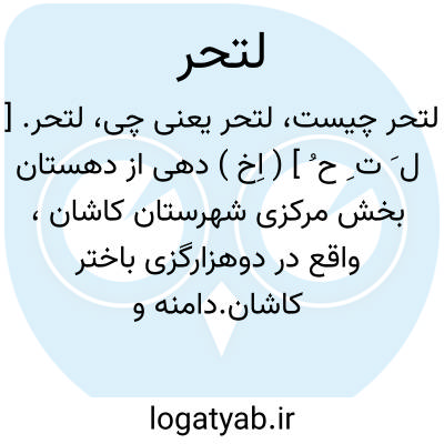 لتحر. [ ل َ ت ِ ح ُ ] ( اِخ ) دهی از دهستان بخش مرکزی شهرستان کاشان، واقع در دوهزارگزی باختر کاشان.دامنه و معتدل، دارای 1940 تن سکنه. شیعه. فارسی زبان. آب آن از چشمه سلیمان فین و رودخانه قمصر. محصول آنجا غلات و تنباکو و پنبه و میوه و صیفی. شغل اهالی زراعت و گله داری. صنایع دستی زنان قالی بافی است و دبستانی نیز دارد. قلعه خرابه قدیمی جلالی بین کاشان و لتحر واقع است. ( از فرهنگ جغرافیایی ایران ج 3 ).