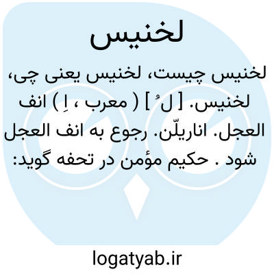 لخنیس. [ ل ُ ] ( معرب، اِ ) انف العجل. اناریلّن. رجوع به انف العجل شود. حکیم مؤمن در تحفه گوید: لغت یونانی و نوعی از خیری بری است نبات او قریب به ذرعی و گلش بنفش و برّی و جبلی میباشد و دانه او سیاه و تلخ به قدر عدسی و نزد بعضی سراج القطرب است. در سیم گرم و دو درهم از تخم او مسهل قوی و رافع سم عقرب شیاله و مفتح سدد و رافع یرقان و قدر شربت از نبات او یک مثقال است و چون گل او را بر روی عقرب اندازند کشنده اوست.
