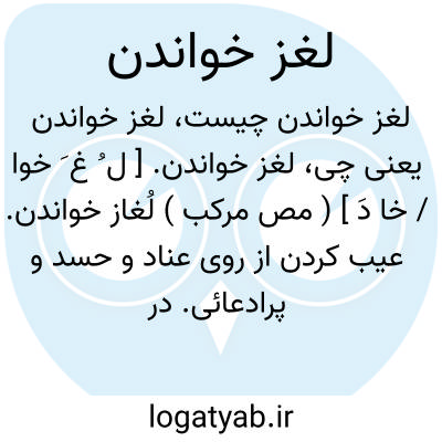 لغز خواندن. [ ل ُ غ َ خوا / خا دَ ] ( مص مرکب ) لُغاز خواندن. عیب کردن از روی عناد و حسد و پرادعائی. در تداول عوام، عیب گفتن چیزی یا کسی را.