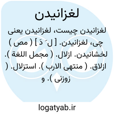 لغزانیدن. [ ل َ دَ ] ( مص ) لخشانیدن. ازلال. ( مجمل اللغة ). ازلاق. ( منتهی الارب ). استزلال. ( زوزنی ). و رجوع به فرولغزانیدن شود: آفریدگار تبارک و تعالی رطوبتی لزج آفریده است اندرون روده ها و بر سطح روده اندوده تا درشتی ثقل و تیزی اخلاط را که بر وی میگذرد از وی بازدارد و آن را زود دفع کند و بلغزاند. ( ذخیره خوارزمشاهی ). دَلق؛ بیرون کردن شمشیر از نیام و لغزانیدن. ادحاض؛ لغزانیدن پای. ( منتهی الارب ).