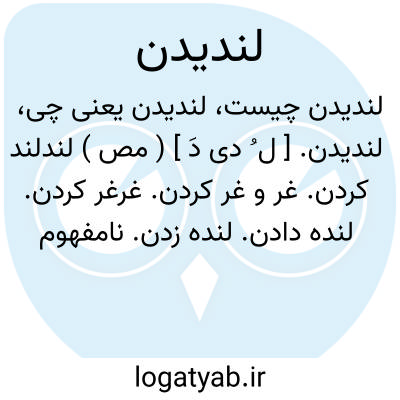 لندیدن. [ ل ُ دی دَ ] ( مص ) لندلند کردن. غر و غر کردن. غرغر کردن. لنده دادن. لنده زدن. نامفهوم کلماتی حاکی از ناخشنودی گفتن. ژکیدن. دندیدن. غرولند کردن. غرولند زدن. خودبه خود سخن گفتن از روی قهر و غضب و غصه. ( برهان ).