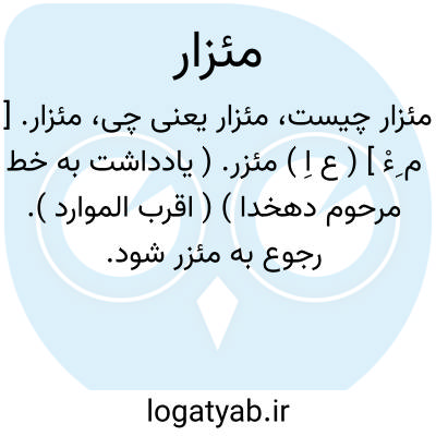 مئزار. [ م ِءْ ] ( ع اِ ) مئزر. ( یادداشت به خط مرحوم دهخدا ) ( اقرب الموارد ). رجوع به مئزر شود.