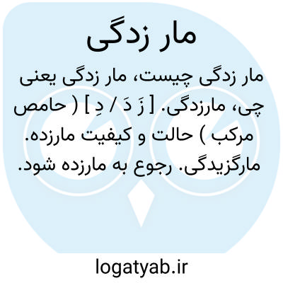 لغت نامه دهخدا مارزدگی. [ زَ دَ / دِ ] ( حامص مرکب ) حالت و کیفیت مارزده. مارگزیدگی. رجوع به مارزده شود.