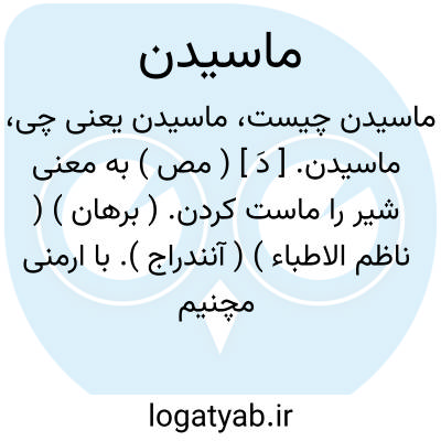 ( مصدر ) ۱- بستن منعقد شدن سفت شدن ( روغن چربی ): روغن ماشین براثر هوای سرد ماسیده. ۲- ماست شدن شیر. ۳- صورت گرفتن تحقق یافتن: میان آنها آشتی نمی ماسد. یا ماسیدن چیزی برای کسی. فایده ای برای اوداشتن: بعد از این همه زحمت چیزی برای ما نمی ماسد ( ماسه ).