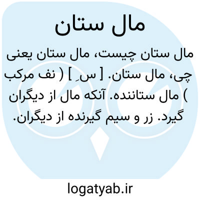 مال ستان. [ س ِ ] ( نف مرکب ) مال ستاننده. آنکه مال از دیگران گیرد. زر و سیم گیرنده از دیگران. خراج ستان. ضبط کننده دارایی و خواسته کسان: