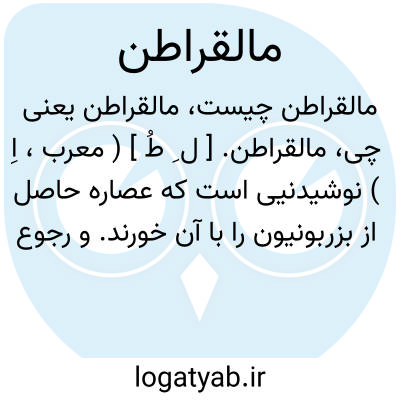 مالقراطن. [ ل ِ طُ ] ( معرب، اِ ) نوشیدنیی است که عصاره حاصل از بزربونیون را با آن خورند. و رجوع به ابن البیطار ج 1 ص 124 و لکلرک ج 1 ص 286 و بونیون در همین لغت نامه شود.