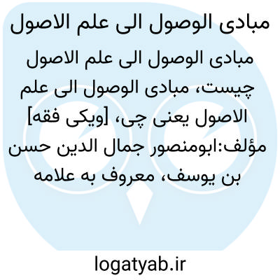 تألیف علامه حلی، کتابی به عربی، در علم اصول فقه امامیه. مؤلف آن را به تقاضای شاگردش، تقی الدین ابراهیم بن محمد بصری، نوشته است. شبیه منهاج الوصول فی معرفة علم الاصول، اثر ناصرالدین بیضاوی است و مسائل ضروری و مهم علم اصول را دربر دارد. در مقایسه با سایر آثار حجیم او در این علم، مانند النهایه و التهذیب، این کتاب را باید از تألیفات مختصر مؤلف به شمار آورد. از ویژگی های آن، نقد و طرح آرای مخالف، مانند آرای اصولی اهل سنت در آن است. شروح فراوان بر آن نوشته اند، مانند ریاض الاصول اثر محمدرضا همدانی؛ لوامع الاصول اثر محمدتقی اصفهانی و غایةالبادی. مبادی الاصول با تصحیح و تحقیق به چاپ رسیده است (قم، ۱۴۰۴ق).
