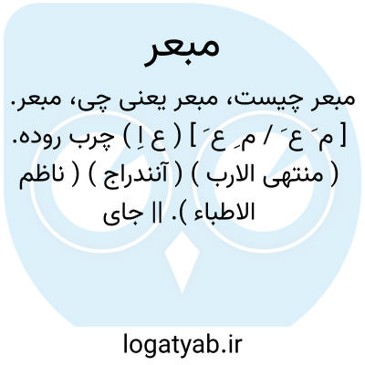 مبعر. [ م َ ع َ / م ِ ع َ ] ( ع اِ ) چرب روده. ( منتهی الارب ) ( آنندراج ) ( ناظم الاطباء ). || جای بعر. ج، مباعر. ( منتهی الارب ) ( آنندراج ). جای پشکل و بعر. ( ناظم الاطباء ). جای خروج پشکل از هر نوع چارپای. ( از محیطالمحیط ). جایگاه پشک رهگذار. ( یادداشت به خط مرحوم دهخدا ):