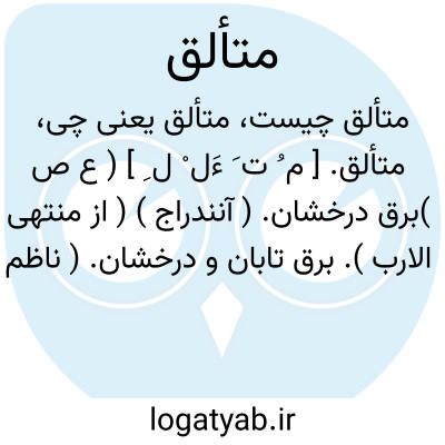 متألق. [ م ُ ت َ ءَل ْ ل ِ ] ( ع ص )برق درخشان. ( آنندراج ) ( از منتهی الارب ). برق تابان و درخشان. ( ناظم الاطباء ). || کسی که سر خود را بلند می کند و سرافرازی می نماید خصوصاً برای خصومت و ستیزگی و خیالات بد. || کسی که خود رازینت می کند. ( ناظم الاطباء ). و رجوع به تألق شود.