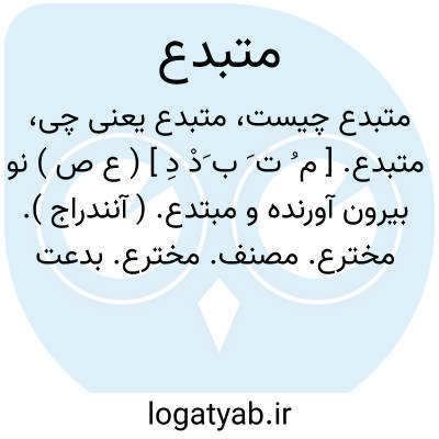 متبدع. [ م ُ ت َ ب َدْ دِ ] ( ع ص ) نو بیرون آورنده و مبتدع. ( آنندراج ). مخترع. مصنف. مخترع. بدعت گذارنده. ( ناظم الاطباء ). || افسانه گو. ( ناظم الاطباء ). و رجوع به مبتدع و تبدع شود.