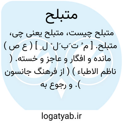 متبلح. [ م ُ ت َب َل ْ ل ِ ] ( ع ص ) مانده و افگار و عاجز و خسته. ( ناظم الاطباء ) ( از فرهنگ جانسون ). و رجوع به تبلح شود.