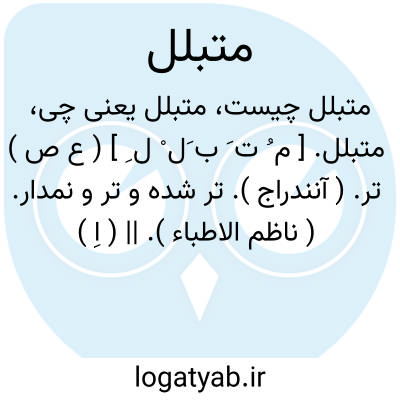 متبلل. [ م ُ ت َ ب َل ْ ل ِ ] ( ع ص ) تر. ( آنندراج ). تر شده و تر و نمدار. ( ناظم الاطباء ). || ( اِ ) شیر که اسد باشد. ( منتهی الارب ) ( از اقرب الموارد ) ( آنندراج ). شیر بیشه. ( ناظم الاطباء ). و رجوع به تبلل شود.