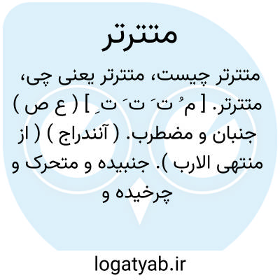 متترتر. [ م ُ ت َ ت َ ت ِ ] ( ع ص ) جنبان و مضطرب. ( آنندراج ) ( از منتهی الارب ). جنبیده و متحرک و چرخیده و چرخ داده شده. ( ناظم الاطباء ). و رجوع به تترتر شود.