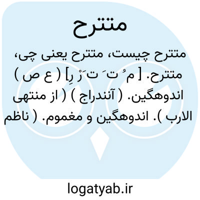 متترح. [ م ُ ت َ ت َرْ رِ] ( ع ص ) اندوهگین. ( آنندراج ) ( از منتهی الارب ). اندوهگین و مغموم. ( ناظم الاطباء ). و رجوع به تترح شود.