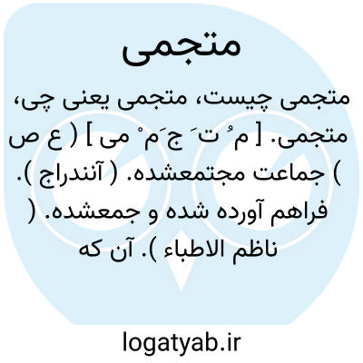 متجمی. [ م ُ ت َ ج َم ْ می ] ( ع ص ) جماعت مجتمعشده. ( آنندراج ). فراهم آورده شده و جمعشده. ( ناظم الاطباء ). آن که می برد خود را با دیگری در زیر یک بالاپوش. ( ناظم الاطباء ). || گیرنده. || پوشنده. ( ناظم الاطباء ) ( از فرهنگ جانسون ). و رجوع به تجمی شود.