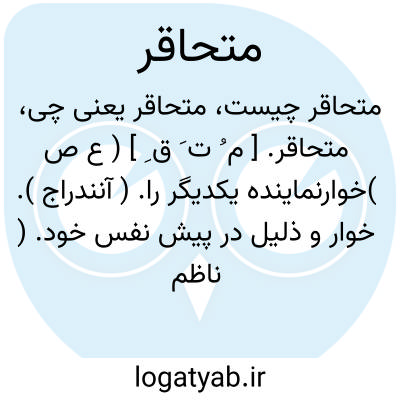 متحاقر. [ م ُ ت َ ق ِ ] ( ع ص )خوارنماینده یکدیگر را. ( آنندراج ). خوار و ذلیل در پیش نفس خود. ( ناظم الاطباء ). و رجوع به تحاقر شود.