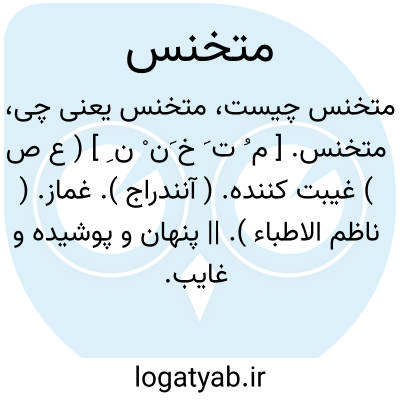 متخنس. [ م ُ ت َ خ َن ْ ن ِ ] ( ع ص ) غیبت کننده. ( آنندراج ). غماز. ( ناظم الاطباء ). || پنهان و پوشیده و غایب. || پس مانده و در عقب مانده. ( ناظم الاطباء ) ( از فرهنگ جانسون ). و رجوع به تخنس شود.