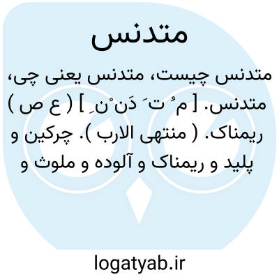 متدنس. [ م ُ ت َ دَن ْن ِ ] ( ع ص ) ریمناک. ( منتهی الارب ). چرکین و پلید و ریمناک و آلوده و ملوث و ناپاک. ( ناظم الاطباء ). || بدخلق. ( منتهی الارب ). بدخلق و کج خلق. ( ناظم الاطباء ). || رسوا و معیوب و زشت نام. ( ناظم الاطباء ) ( از فرهنگ جانسون ). و رجوع به تدنس شود.