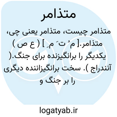 متذامر.[ م ُ ت َ م ِ ] ( ع ص ) یکدیگر را برانگیزنده برای جنگ.( آنندراج ). سخت برانگیزاننده دیگری را بر جنگ و برانگیخته شده. ( ناظم الاطباء ). و رجوع به تذامر شود.