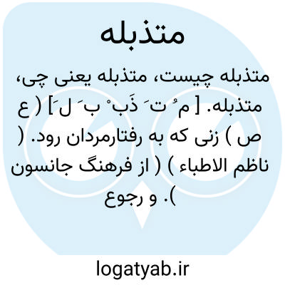 متذبله. [ م ُ ت َ ذَب ْ ب َ ل َ] ( ع ص ) زنی که به رفتارمردان رود. ( ناظم الاطباء ) ( از فرهنگ جانسون ). و رجوع به متذبل و تذبل شود.