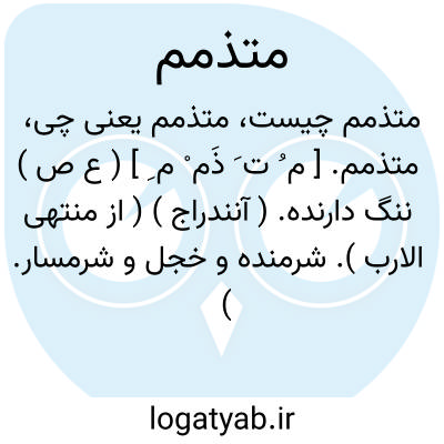 متذمم. [ م ُ ت َ ذَم ْ م ِ ] ( ع ص ) ننگ دارنده. ( آنندراج ) ( از منتهی الارب ). شرمنده و خجل و شرمسار. ( ناظم الاطباء ). و رجوع به تذمم شود.