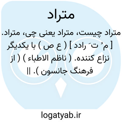 متراد. [ م ُ ت َ رادد ] ( ع ص ) با یکدیگر نزاع کننده. ( ناظم الاطباء ) ( از فرهنگ جانسون ). || یکدیگر را دفع و طرد کننده ودور کننده. ( ناظم الاطباء ). || راضی به حل شرط. ( ناظم الاطباء ). راضی به فسخ بیع. ( از اقرب الموارد ). و رجوع به تراد شود. || آب بازگردنده از مجرای خود به سبب مانعی. ( از اقرب الموارد ).