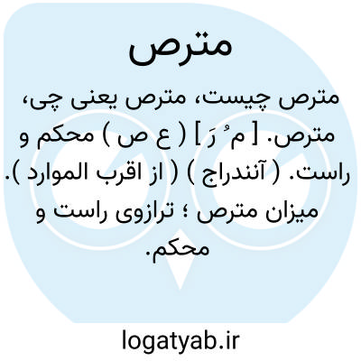 مترص. [ م ُ رَ ] ( ع ص ) محکم و راست. ( آنندراج ) ( از اقرب الموارد ). میزان مترص؛ ترازوی راست و محکم. ( منتهی الارب ) ( آنندراج ). ترازوی راست و عدل و محکم. ( ناظم الاطباء ). میزان تریص و مترص؛ عدل لایحیف. ( از اقرب الموارد ).