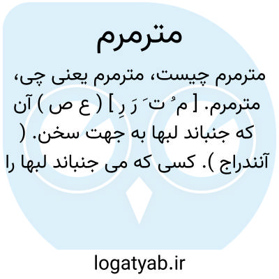 مترمرم. [ م ُ ت َ رَ رِ ] ( ع ص ) آن که جنباند لبها به جهت سخن. ( آنندراج ). کسی که می جنباند لبها را بی آن که سخن گوید. ( ناظم الاطباء ). و رجوع به ترمرم شود.