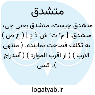 متشدق. [ م ُ ت َ ش َدْ دِ ] ( ع ص ) به تکلف فصاحت نماینده. ( منتهی الارب ) ( از اقرب الموارد ) ( آنندراج ). کسی که به تکلف فصاحت می نماید. ( ناظم الاطباء ). || فسوس کننده مردم را. ( منتهی الارب ). استهزاء کننده. ( ذیل اقرب الموارد ). منه الحدیث: ابغضکم الی الثرثارون المتشدقون. ( ذیل اقرب الموارد ) || آن که در تکلم بانگ فراوان می زند. ( ناظم الاطباء ). و رجوع به تشدق شود.