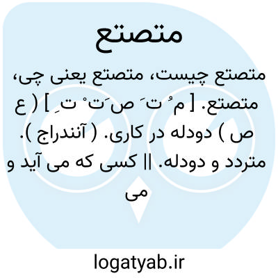 متصتع. [ م ُ ت َ ص َت ْ ت ِ ] ( ع ص ) دودله در کاری. ( آنندراج ). متردد و دودله. || کسی که می آید و می رود. || تنها آینده بدون چیزی. ( ناظم الاطباء ). ( از منتهی الارب ) ( از اقرب الموارد ). و رجوع به تصتع شود.