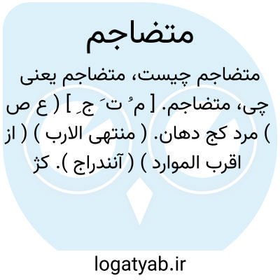 متضاجم. [ م ُ ت َ ج ِ ] ( ع ص ) مرد کج دهان. ( منتهی الارب ) ( از اقرب الموارد ) ( آنندراج ). کژ دهان. ( ناظم الاطباء ). || مخالف در امری. ( منتهی الارب ) ( آنندراج ). مخالف و متعرض. ( ناظم الاطباء ). و رجوع به تضاجم شود.