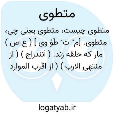 متطوی. [م ُ ت َ طَوْ وی ] ( ع ص ) مار که حلقه زند. ( آنندراج ) ( از منتهی الارب ) ( از اقرب الموارد ). حلقه زده و پیچیده مانند مار. ( ناظم الاطباء ). و رجوع به تطوی شود.
