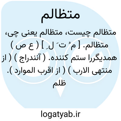 متظالم. [ م ُ ت َ ل ِ ] ( ع ص ) همدیگررا ستم کننده. ( آنندراج ) ( از منتهی الارب ) ( از اقرب الموارد ). ظلم و ستم کننده یکی مر دیگری را. ( ناظم الاطباء ). || اظهار ظلم کننده از یکدیگر. ( ناظم الاطباء ) ( فرهنگ جانسون ). و رجوع به تظالم شود.