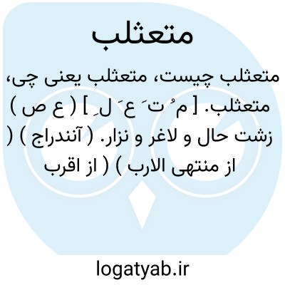 متعثلب. [ م ُ ت َ ع َ ل ِ ] ( ع ص ) زشت حال و لاغر و نزار. ( آنندراج ) ( از منتهی الارب ) ( از اقرب الموارد ).لاغر و نزار. ( ناظم الاطباء ). و رجوع به تعثلب شود.