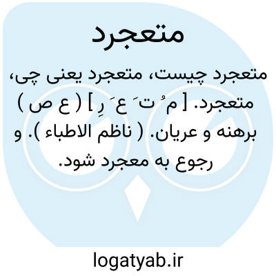 لغت نامه دهخدا متعجرد. [ م ُ ت َ ع َ رِ ] ( ع ص ) برهنه و عریان. ( ناظم الاطباء ). و رجوع به معجرد شود.
