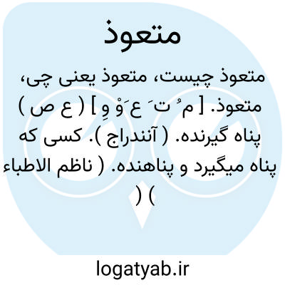 متعوذ. [ م ُ ت َ ع َوْ وِ ] ( ع ص ) پناه گیرنده. ( آنندراج ). کسی که پناه میگیرد و پناهنده. ( ناظم الاطباء ) ( از منتهی الارب ) ( از اقرب الموارد ). و رجوع به تعوذ شود.