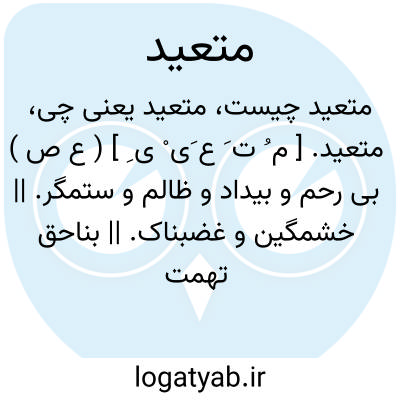 متعید. [ م ُ ت َ ع َی ْ ی ِ ] ( ع ص ) بی رحم و بیداد و ظالم و ستمگر. || خشمگین و غضبناک. || بناحق تهمت زننده. || تهدیدکننده و ترساننده. ( ناظم الاطباء ) ( از فرهنگ جانسون ). و رجوع به تعید شود.