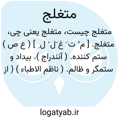 متغلج. [ م ُ ت َ غ َل ْ ل ِ ] ( ع ص ) ستم کننده. ( آنندراج ). بیداد و ستمگر و ظالم. ( ناظم الاطباء ) ( از منتهی الارب ) ( از اقرب الموارد ). و رجوع به تغلج شود.