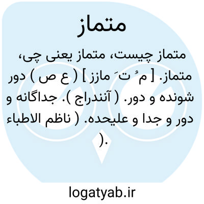 متماز. [ م ُ ت َ مازز ] ( ع ص ) دور شونده و دور. ( آنندراج ). جداگانه و دور و جدا و علیحده. ( ناظم الاطباء ). رجوع به تماز شود.