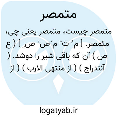 متمصر. [ م ُ ت َ م َص ْ ص ِ ] ( ع ص ) آن که باقی شیر را دوشد. ( آنندراج ) ( از منتهی الارب ) ( از اقرب الموارد ). کسی که می دوشد باقی شیر را.( ناظم الاطباء ). || کسی که به سرانگشتان یا به سبابه و ابهام می دوشد. ( ناظم الاطباء ) ( از منتهی الارب ) ( از اقرب الموارد ). || کم شده. ( ناظم الاطباء ) ( منتهی الارب ). || پی روی نماینده. || پراکنده شده. ( ناظم الاطباء ) ( از منتهی الارب ) ( از اقرب الموارد ). و رجوع به تمصر شود.