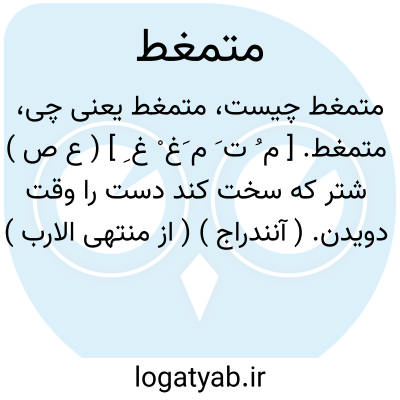 متمغط. [ م ُ ت َ م َغ ْ غ ِ ] ( ع ص ) شتر که سخت کند دست را وقت دویدن. ( آنندراج ) ( از منتهی الارب ) ( از اقرب الموارد ). اسب یا شتری که در رفتن دست را سخت می کشد. ( ناظم الاطباء ). و رجوع به تمغط شود.