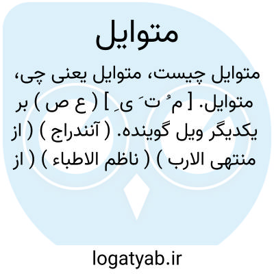 متوایل. [ م ُ ت َ ی ِ ] ( ع ص ) بر یکدیگر ویل گوینده. ( آنندراج ) ( از منتهی الارب ) ( ناظم الاطباء ) ( از اقرب الموارد ). و رجوع به توایل شود.