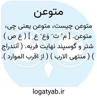 متوعن. [ م ُ ت َ وَع ْ ع ِ ] ( ع ص ) شتر و گوسپند نهایت فربه. ( آنندراج ) ( منتهی الارب ) ( از اقرب الموارد ). شتر و گوسپند بسیار فربه. ( ناظم الاطباء ). || کسی که میگیرد همه چیز را. ( ناظم الاطباء ) ( منتهی الارب ) ( از اقرب الموارد ). و رجوع به توعن شود.