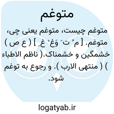 متوغم. [ م ُ ت َ وَغ ْ غ ِ ] ( ع ص ) خشمگین و خشمناک.( ناظم الاطباء ) ( منتهی الارب ). و رجوع به توغم شود.
