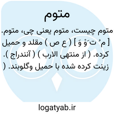 متوم. [ م ُ ت َوْ وَ ] ( ع ص ) مقلد و حمیل کرده. ( از منتهی الارب ) ( آنندراج ). زینت کرده شده با حمیل وگلوبند. ( ناظم الاطباء ). مقرط و گردن بندپوشیده. ( از اقرب الموارد ). و رجوع به مقرط و مقلد و حمیل شود.