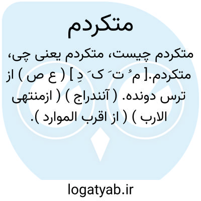 متکردم.[ م ُ ت َ ک َ دِ ] ( ع ص ) از ترس دونده. ( آنندراج ) ( ازمنتهی الارب ) ( از اقرب الموارد ). ترسیده و هراسیده ودونده از ترس. ( ناظم الاطباء ). رجوع به تکردم شود.