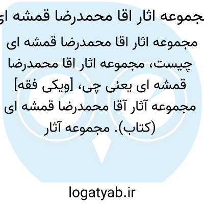 [ویکی فقه] مجموعه آثار آقا محمدرضا قمشه ای (کتاب). مجموعه آثار حکیم صهبا، کتابی است در دو جزء شامل زندگی نامه و آثار عارف الهی آقا محمدرضا قمشه ای (۱۲۴۱-۱۳۰۶) به اهتمام حامد ناجی اصفهانی و خلیل بهرامی قصر چمنی می باشد.