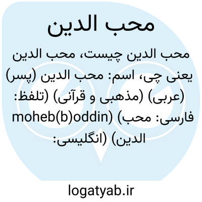 اسم: محب الدین (پسر) (عربی) (مذهبی و قرآنی) (تلفظ: moheb(b)oddin) (فارسی: محب الدين) (انگلیسی: moheboddin)
