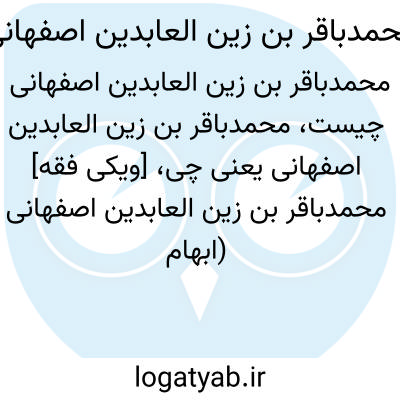 [ویکی فقه] محمدباقر بن زین العابدین اصفهانی (ابهام زدایی). محمدباقر بن زین العابدین اصفهانی ممکن است اشاره به اشخاص و شخصیت های ذیل باشد: • محمدباقر بن زین العابدین قمشه ای اصفهانی، از نویسندگان کتب در قرن سیزدهم هجری در اصفهان• محمدباقر بن زین العابدین یزدی اصفهانی، دانشمند و ریاضی دان معروف قرن یازدهم هجری در اصفهان