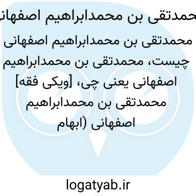 [ویکی فقه] محمدتقی بن محمدابراهیم اصفهانی (ابهام زدایی). محمدتقی بن محمدابراهیم اصفهانی ممکن است اشاره به اشخاص و شخصیت های ذیل باشد: • محمدتقی بن محمدابراهیم خوشنویس اصفهانی، از خوشنویسان قرن سیزدهم هجری در اصفهان• محمدتقی صحاف بن محمدابراهیم مقدس اصفهانی، از هنرمندان ذوالفنون و مجهول القدر اصفهان